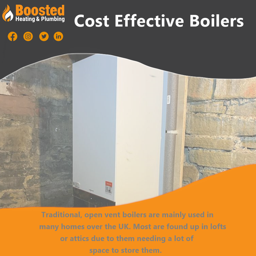 Traditional, open vent boilers are mainly used in many homes over the UK. Most are found up in lofts or attics due to them needing a lot of space to store them.